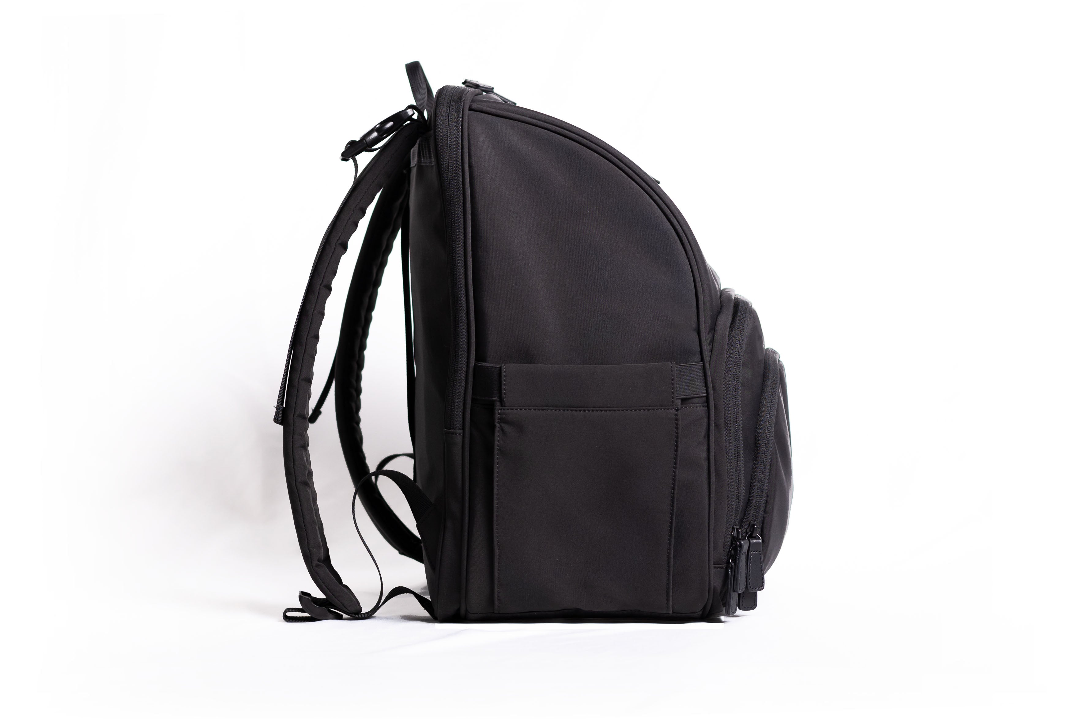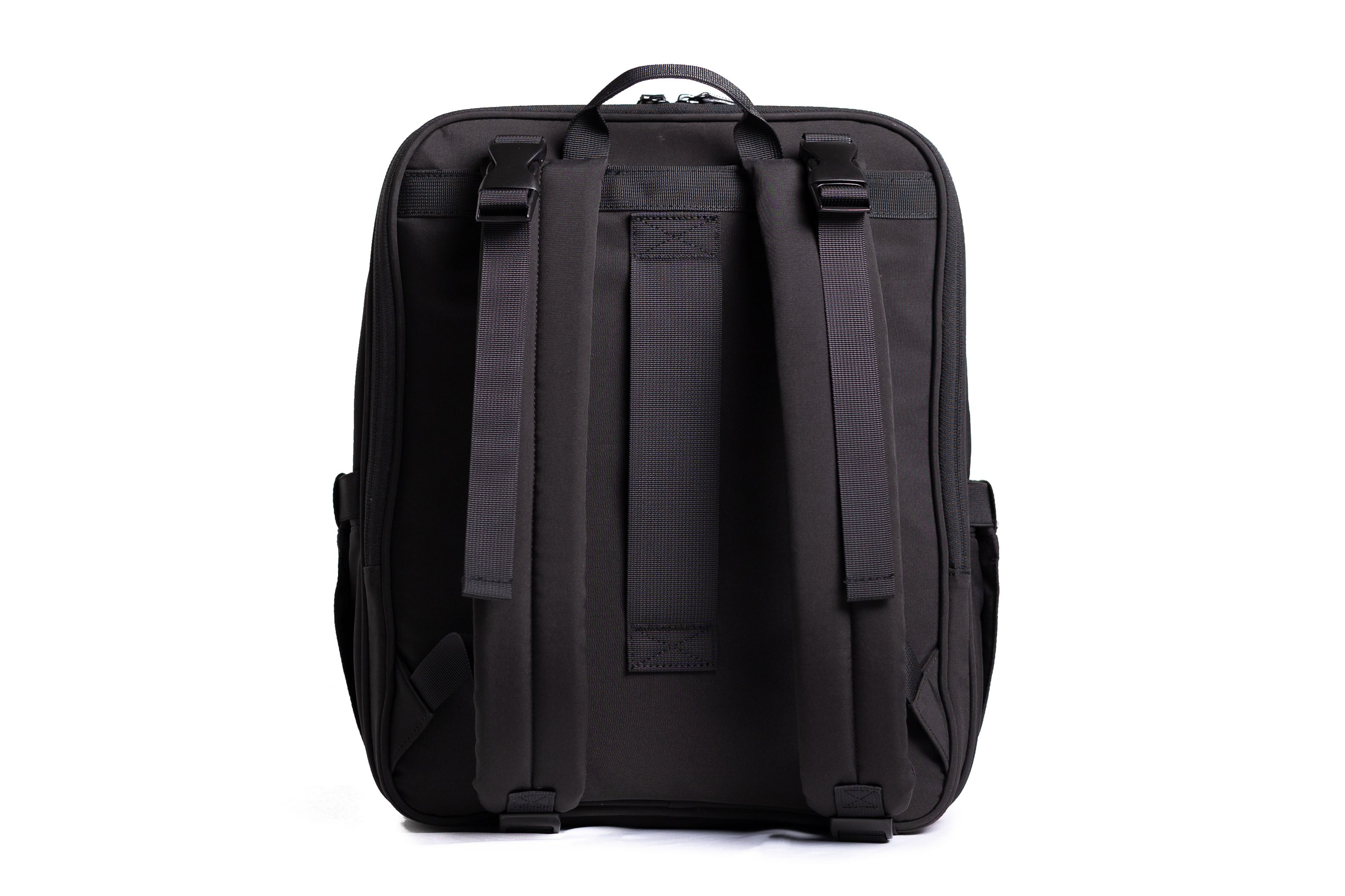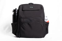 Extra large side pockets crafted to secure water bottles up to 2 liters.