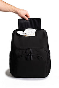 "Head" and "Feet" labeled changing pad and "Soiled" bag in a zero-struggle pocket.
