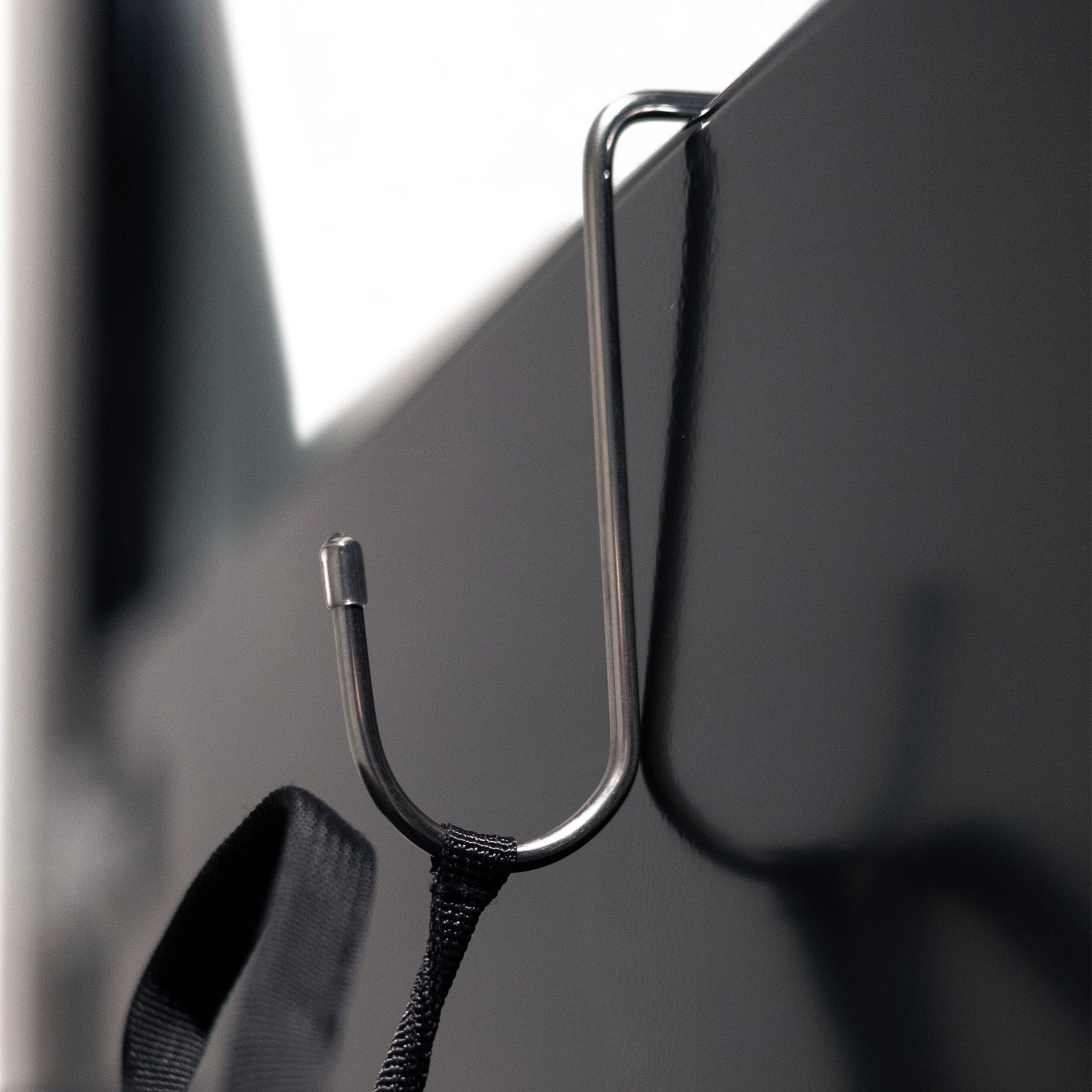Stall door missing a hook? We've got you covered with a hook to hang over the door. Securely tuck in a hidden pocket once mission is accomplished.