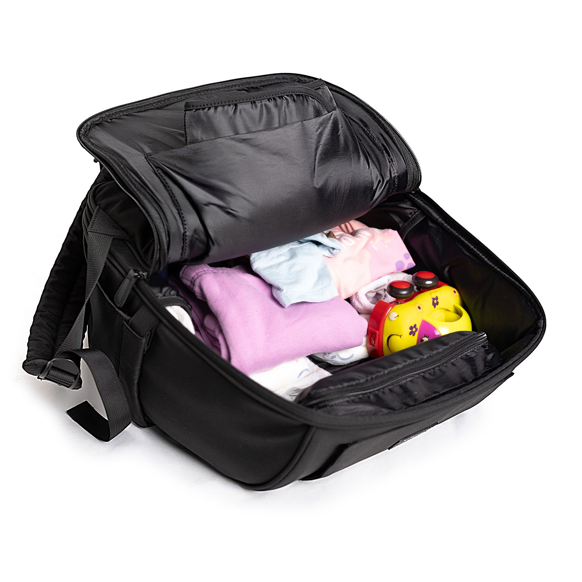 2 interior pockets specially designed to hold diapers for easy access