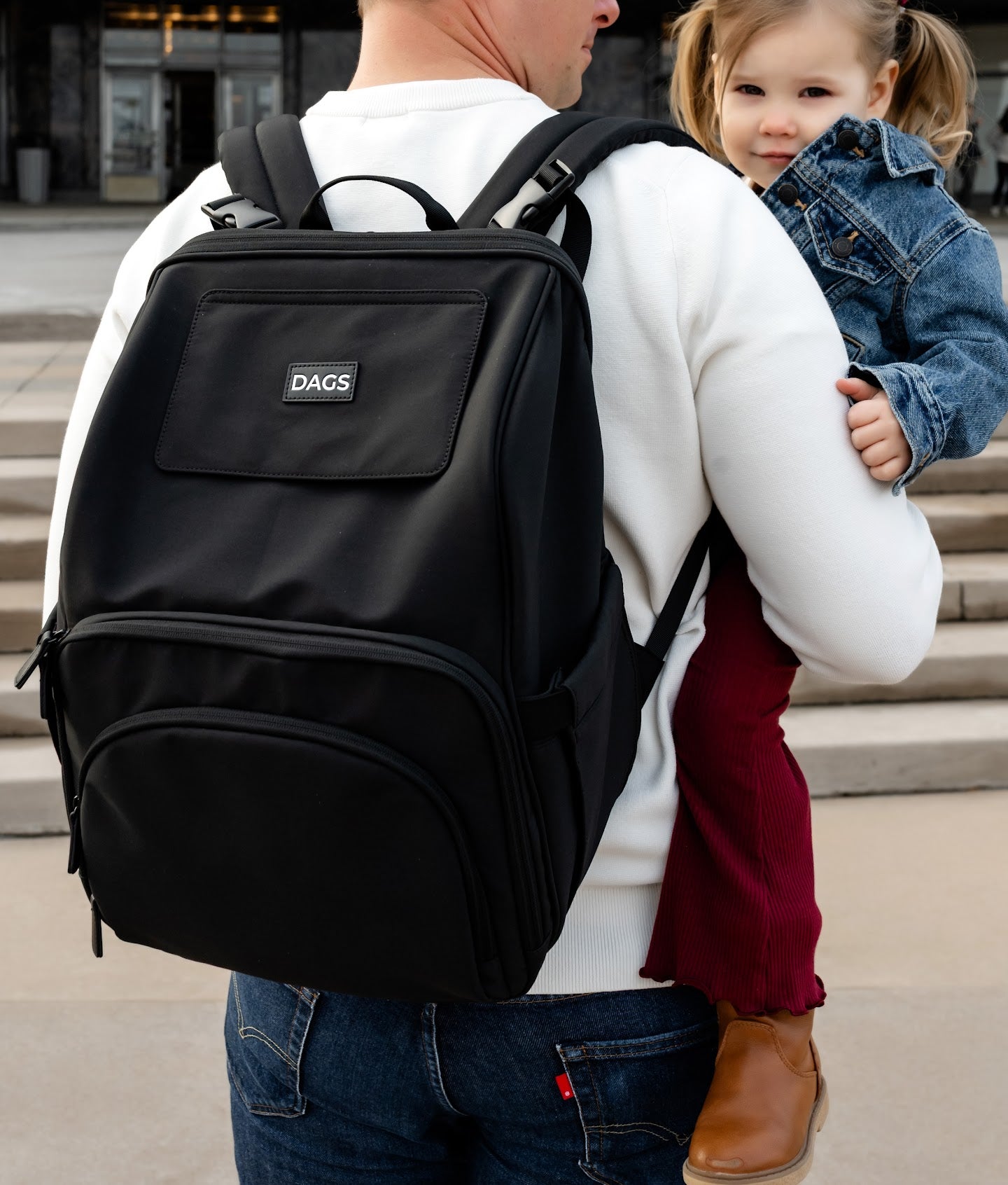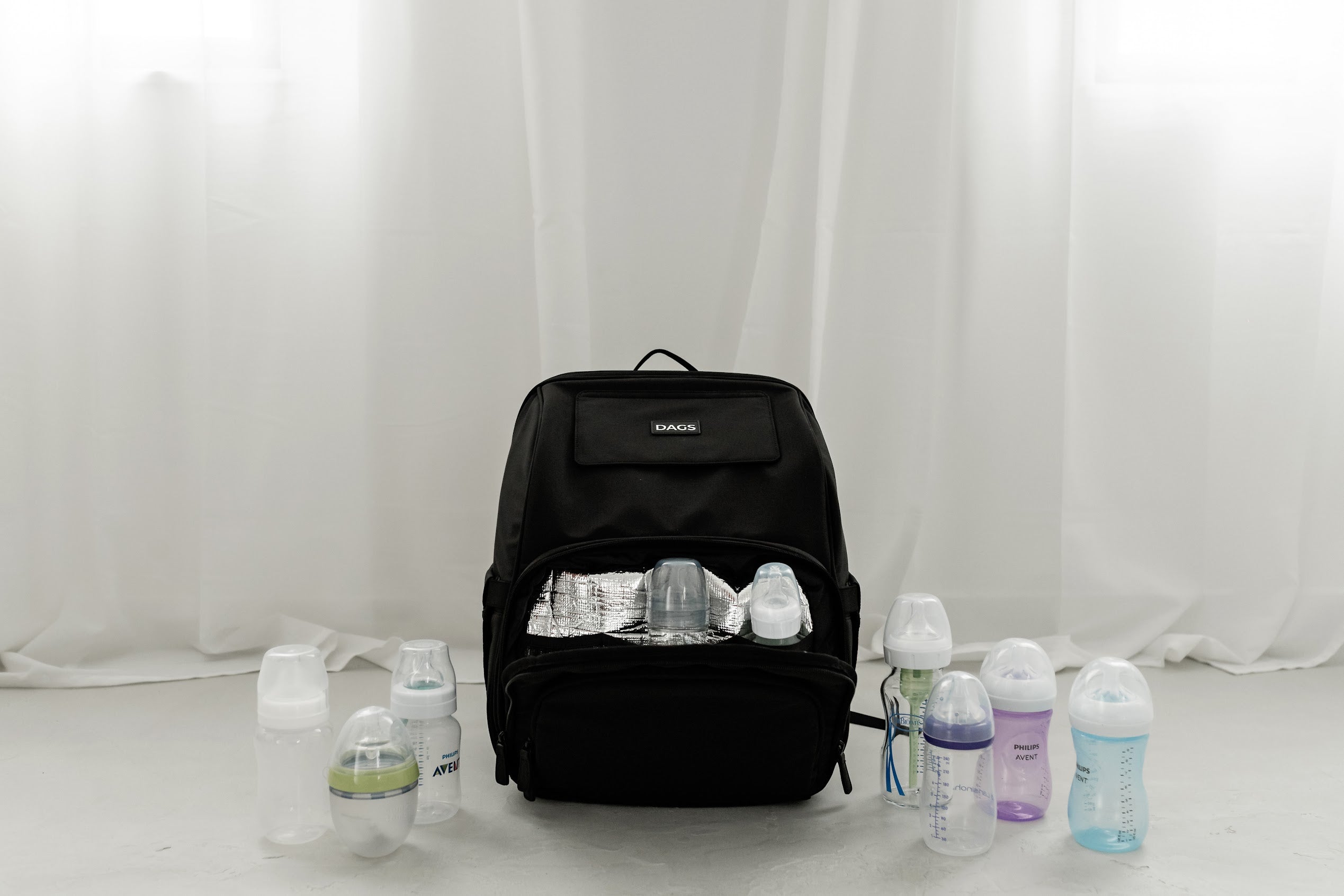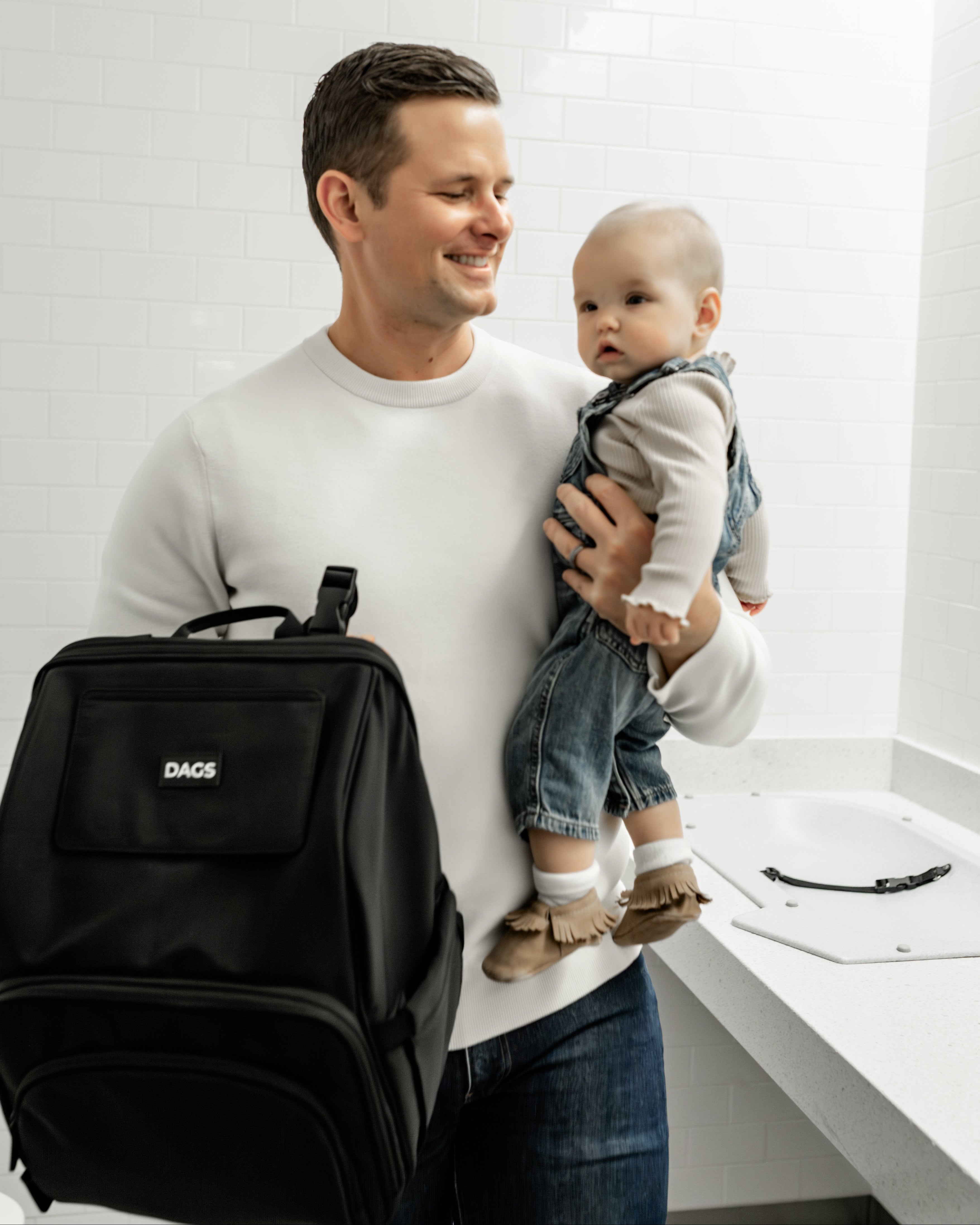 Our diaper bag revolution begins with The DAGS System--a collection of features designed to eliminate one-handed diaper changes.